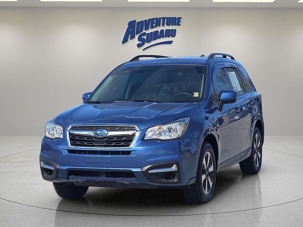 2018 Subaru Forester 2.5i Premium Quartz Blue Pearl CLEAN CARFAX, ONE OWNER, LOCAL TRADE IN, SUN/MOONROOF, DRIVER ASSIST TECHNOLOGY, APPLE CAR PLAY, Alloy Wheels, Audio Package, Backup Camera, Blind Spot Monitoring, Bluetooth, CarPlay, Convenience Light Package, Heat Package, Heated Seats, Light Package, Moonroof, Parking Sensors, Power Mirror Package, Power Package, Safety Package, Security Package, Sound Package, Sunroof/Moonroof, Air Conditioning, Alloy wheels, AM/FM radio: SiriusXM, Automatic temperature control, Brake assist, CD player, Electronic Stability Control, Exterior Parking Camera Rear, Four wheel independent suspension, Panic alarm, Power driver seat, Power moonroof, Power steering, Power windows, Rear window defroster, Security system, Speed control, Traction control. Odometer is 66377 miles below market average! 26/32 City/Highway MPG